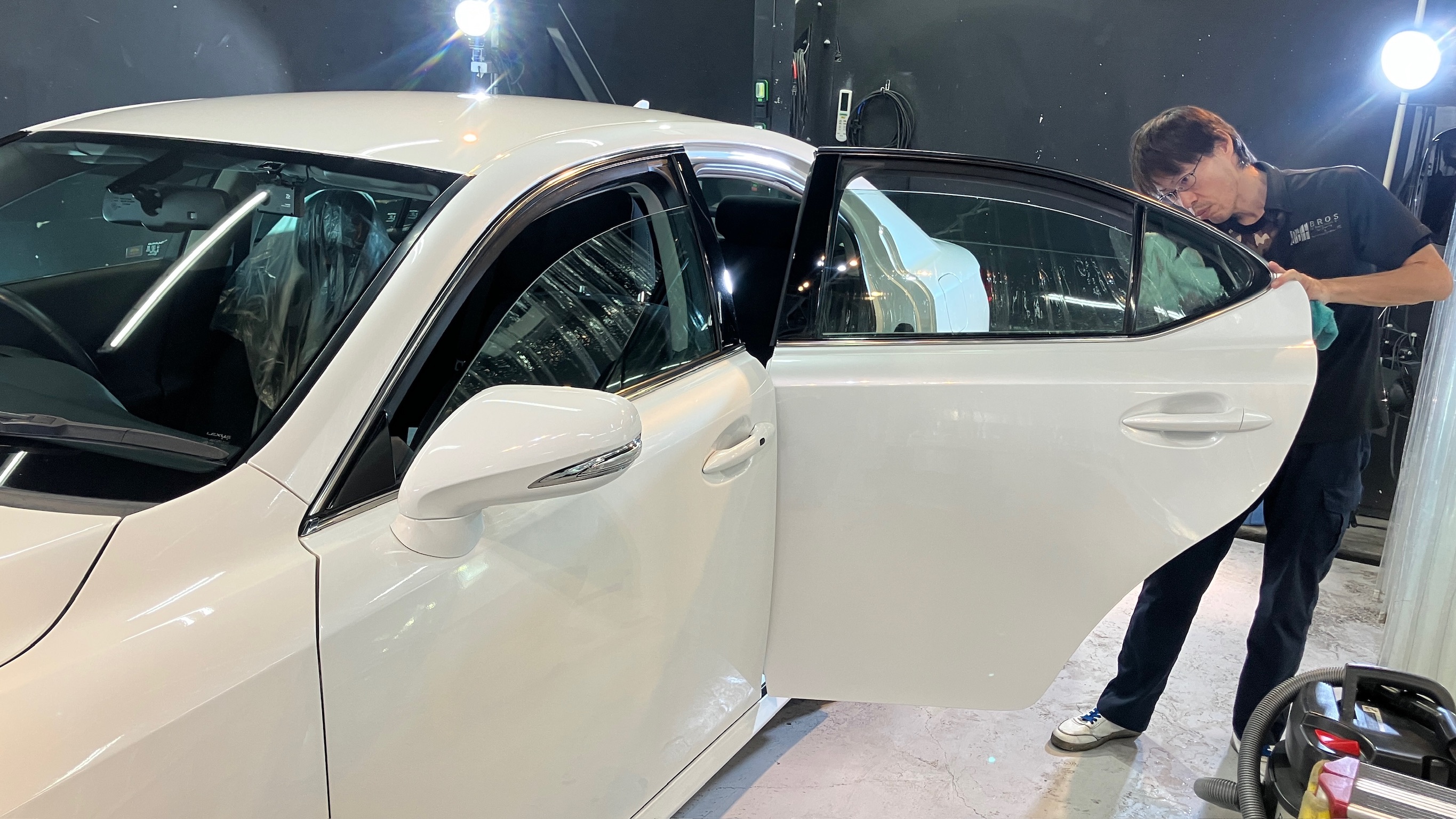 当店はコーティングの他にもカーフィルムやカークリーニング、ヘッドライト磨きなど専門のスタッフが在籍しており、同時に施工ができます。