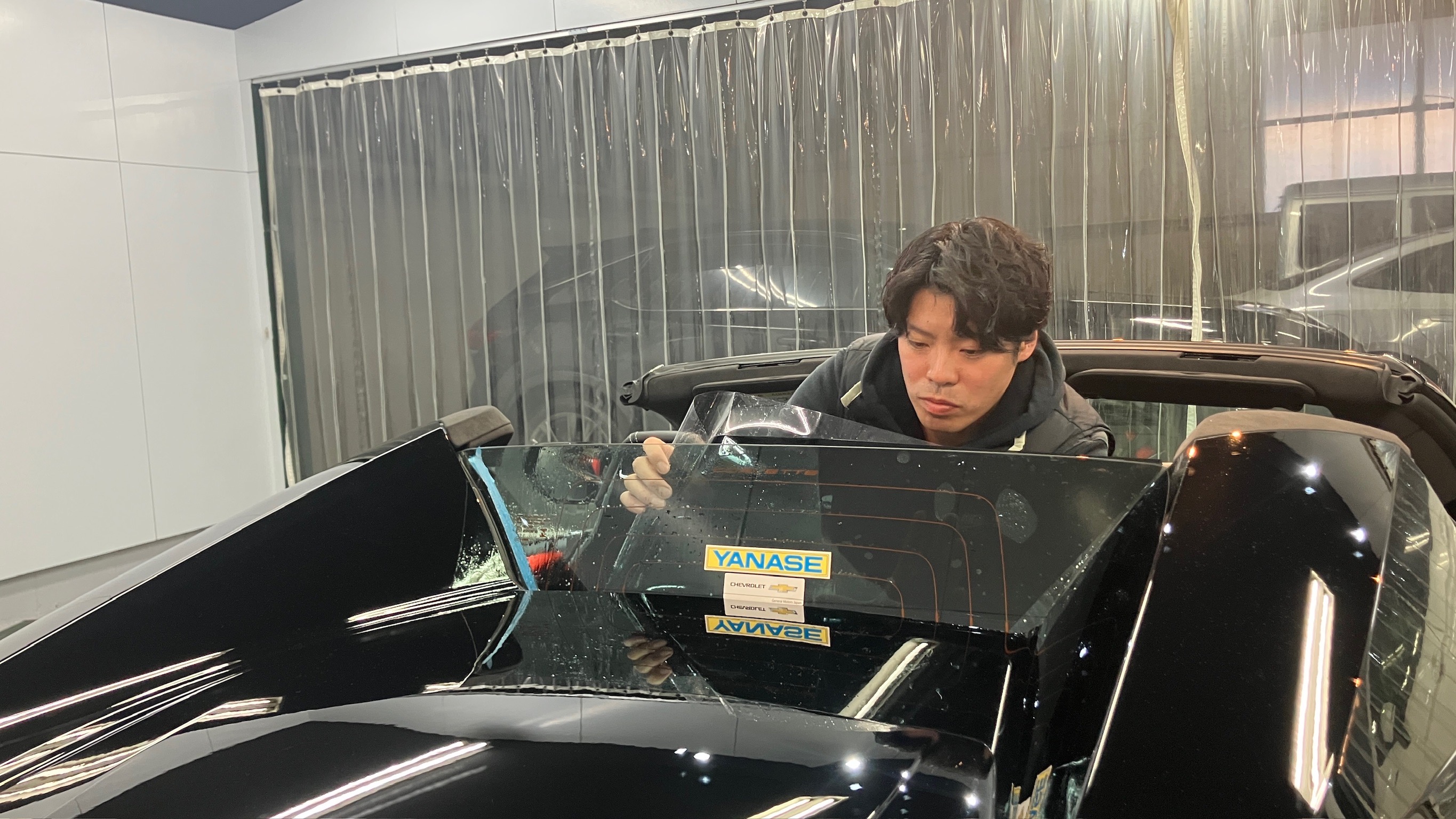 リアガラスへの施工も1枚張り施工のため